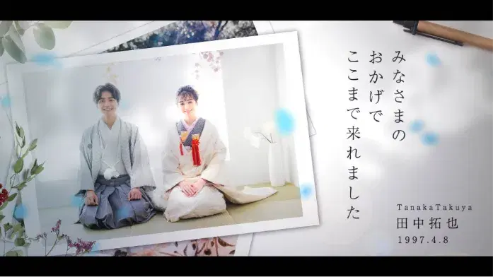 プロフィールムービーは、主に中座の際に流すムービーでお二人の生い立ちを振り返ることができます。お互いのゲストに自分たちのことを知ってもらったり、懐かしいあの頃を振り返得ることにより会場の一体感がます人気の演出となっています。「懐かしい!こんな思い出あったな〜」と、モニターを見ながら目を細めるご友人や、同僚の皆様。「本当におめでとう」と、幸せを噛み締めるお母様。静かに笑って涙を流すお父様……。音楽と合わせて会場の雰囲気を一気に高めてくれます